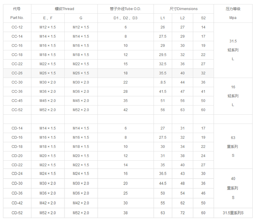 20511公制內螺紋24°錐O重系列