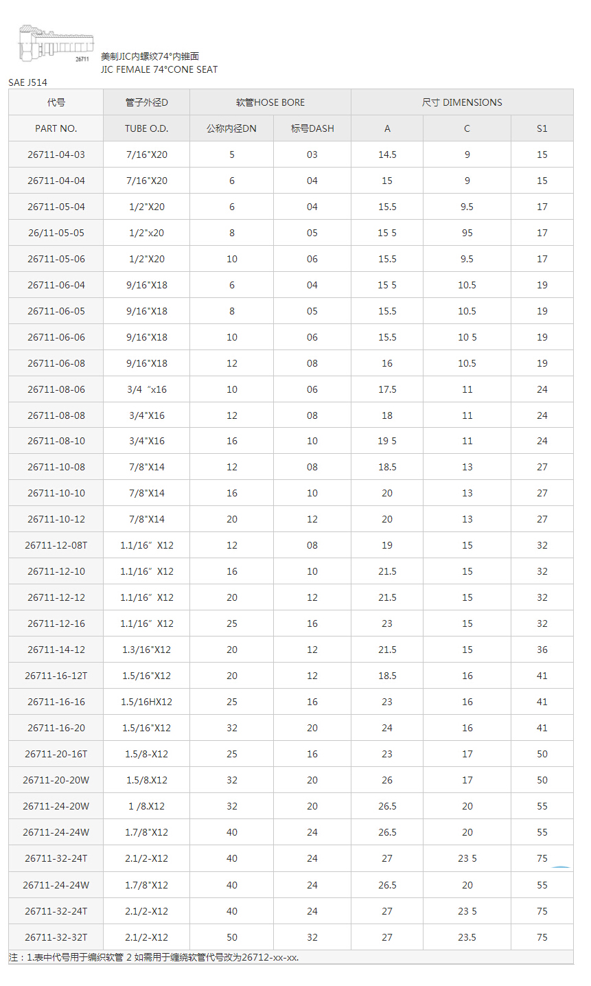 26711美制JIC內螺紋74°內錐面系列