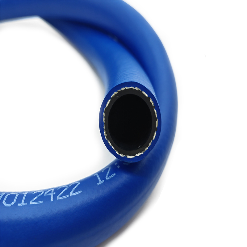 增強(qiáng)層:一層高強(qiáng)度合成纖維編織層,特殊的編織角度使得軟管具備高耐曲繞性,并對接頭有較強(qiáng)的抱緊度,不必再使用卡箍緊固。